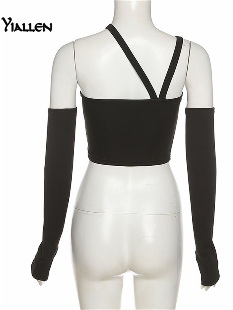 Yiallen Autumn Fashion Casual Slim Solid Removable Sleeves Halter T Shirt For Women New Streetwear Wild Basic Female Top Hot